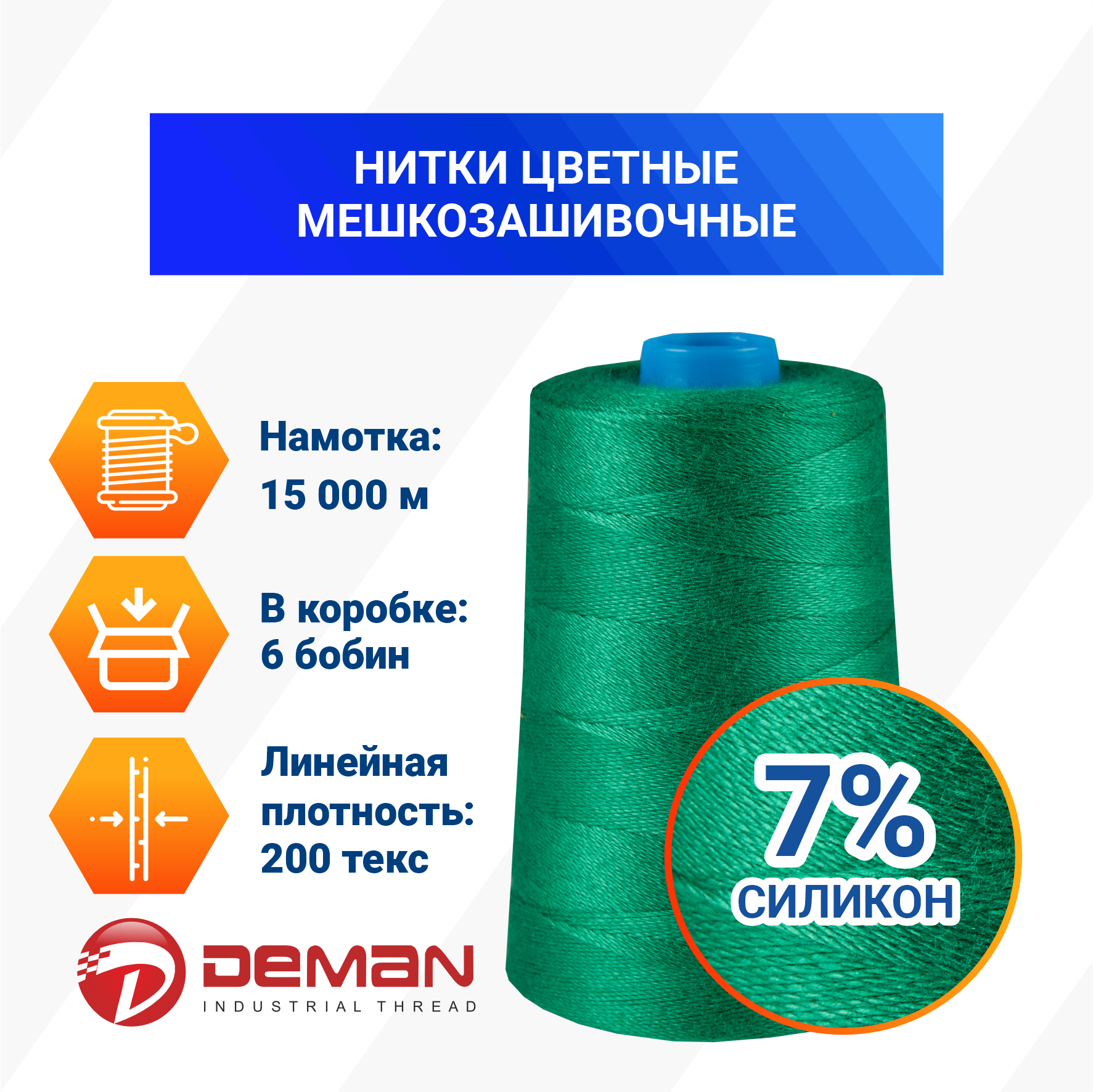 —Нитки мешкозашивочные полиэстер 15000м 3кг 200текс, зеленый